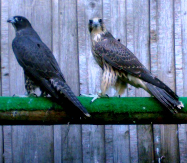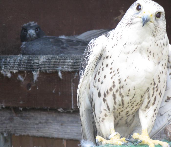 Grauer Gerfalke und Wanderfalke